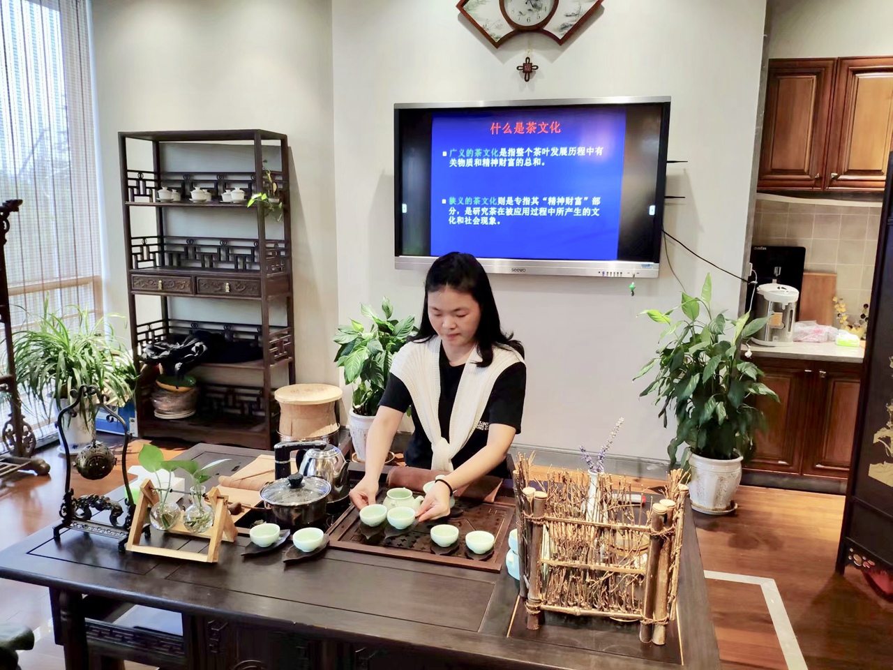 鲍露老师为同学们讲授“茶文化讲堂”