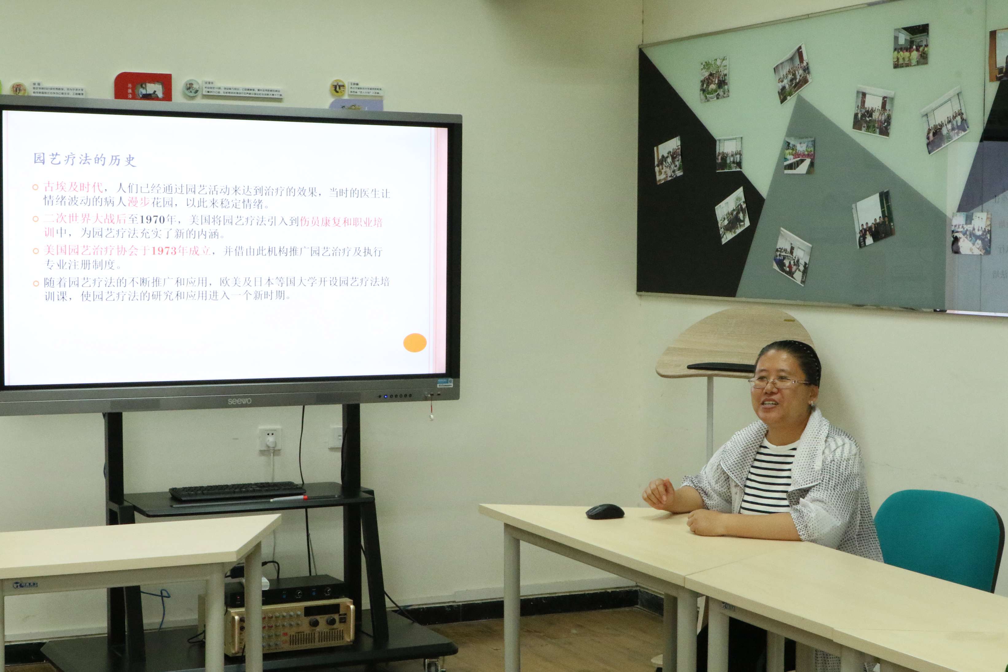 “园艺植心讲堂”上裘莉娟老师为同学们讲解“园艺疗法”知识