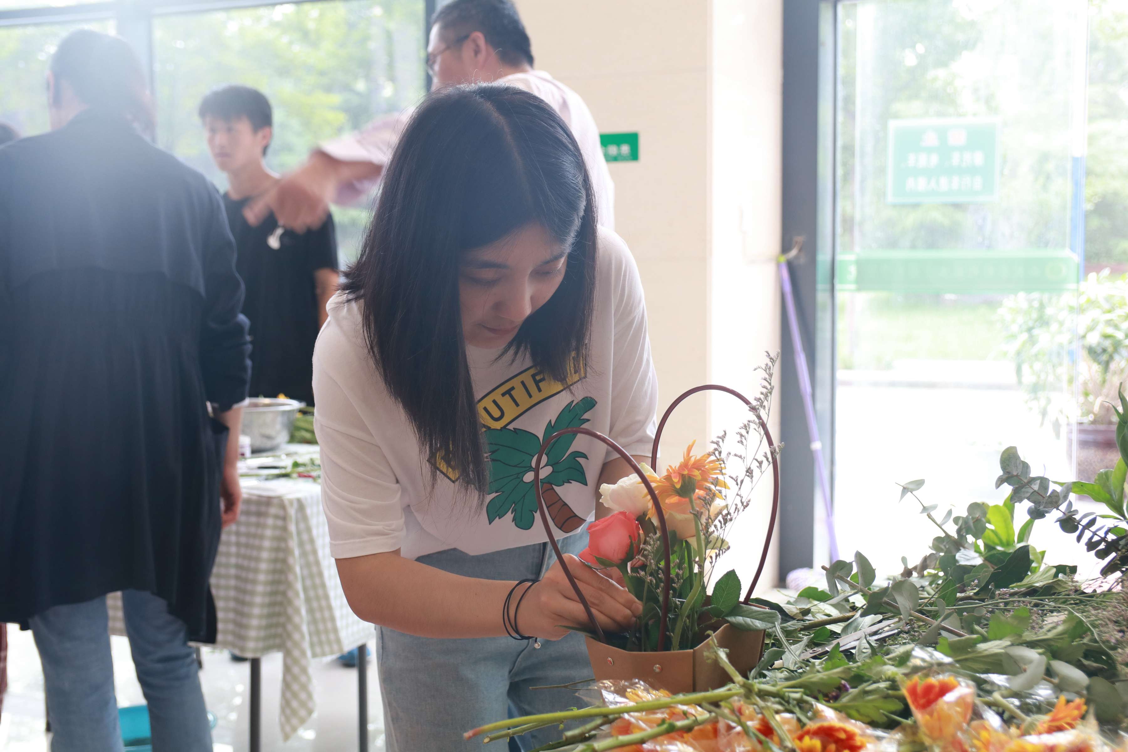 同学们在体验“园艺疗法”插花设计
