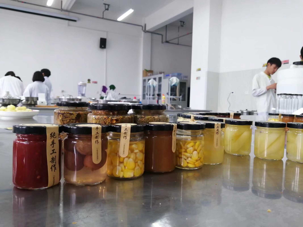 同学们在实验室进行园艺加工品制作