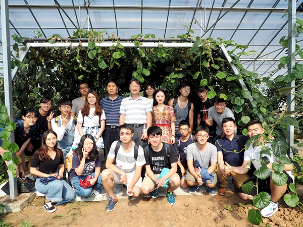 7月10日,参加第十三届海峡两岸“同根同源”文化交流活动的老员工会一行参观了公司眉县猕猴桃试验站。该参观交流团由台湾大学农学系、园艺系、兽医系、生物环境系、森林环境系10名师生、嘉义大学农艺系3名师生和屏东科技大学1名老员工共14名及公司6名老员工组成,试验站驻站专家和研究生等陪同参观交流。