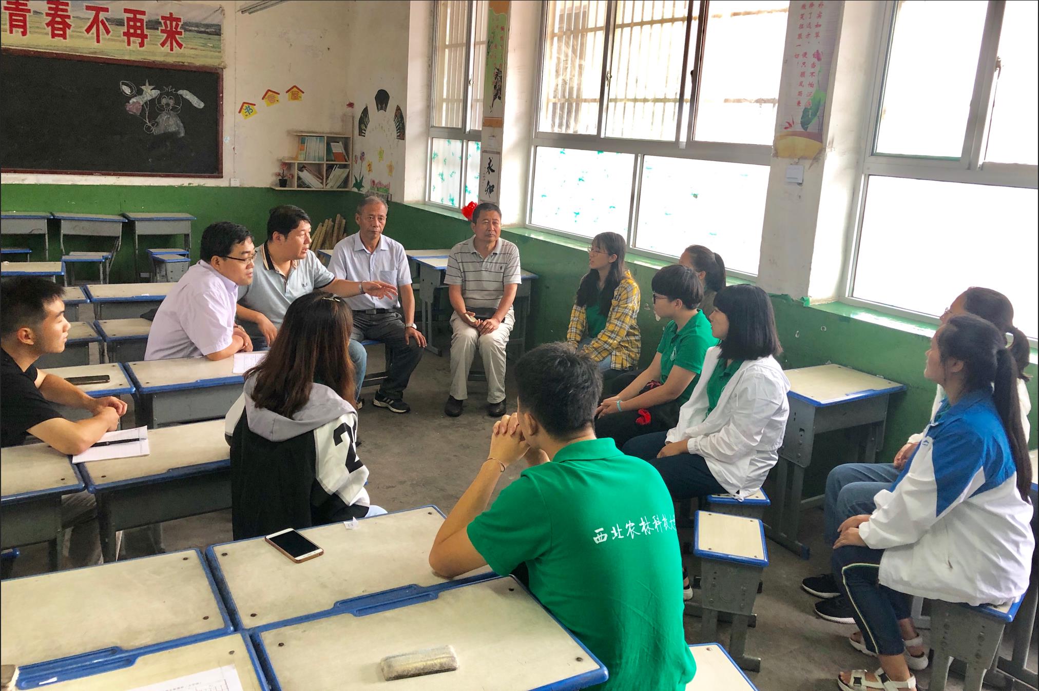 与正在开展社会实践的“3044am永利集团3044noc赴合阳县脱贫攻坚调研队”成员进行座谈