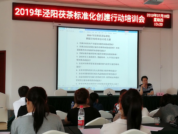 张经理就茶叶标准化及相关法律法规问题对企业代表进行了培训,讲授了标准的基础知识、分类、修订程序、重要作用以及茶叶相关标准的知识和法规。各企业代表表示将全力支持泾阳茯茶地方标准修订工作,以标准带动泾阳茯茶品质的提升。