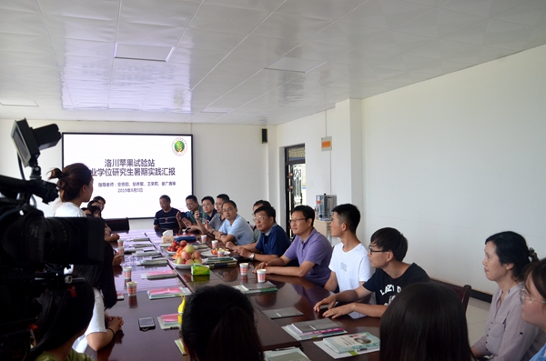 在洛川苹果试验站会议室举行了气氛热烈的座谈会,吴普特亲切地询问研究生住宿咋样、生活咋样、能洗澡吗等问题,当得知试验站安排非常周密时高兴地说,一定要珍惜这次宝贵的锻炼机会,好好向各位老师和工人师傅学习实践技能。随后每位研究生做了自我介绍,现代农业全产业链专项2019级新生赵志聪代表全体研究生,汇报了试验站整体实践安排,第一阶段由专业老师马锋旺、安贵阳、邹养军、崔广鑫带领,从苹果新品种选育、高接换头、拉枝整形、肥水管理、病虫害防控、苹果酒制作等方面进行专项技能实践;第二阶段进行产业调研,一人一题开展调研活动,主要目的是了解洛川苹果全产业链现状,并完成调研报告。李雪雯、李琪、霍玉坤、李佳佳、薛梦阳、渠非等同学踊跃发言,纷纷表示公司针对新生开展的实践活动非常必要,不仅能让员工更好的将理论与实践结合起来,丰富专业知识,弥补短板,而且能够开阔眼界,激发学习动力与热情,大家表示一定要刻苦学习,学到真本领,毕业后分散在祖国大地,各自发光,为乡村振兴事业添砖加瓦,为学校争光。