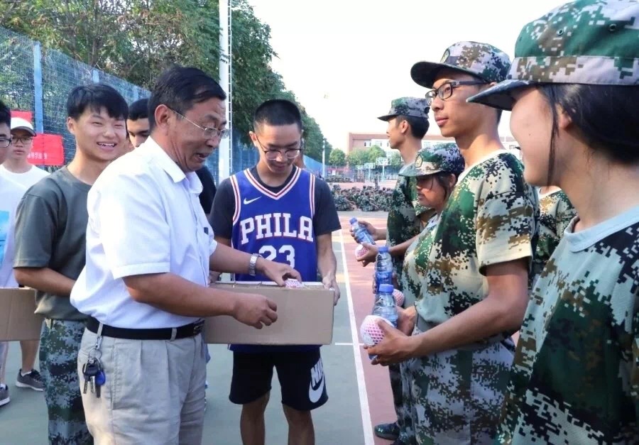 为了给新生准备具有特殊意义的军训慰问品,让同学们感知专业特色,9月2日下午,学院经理马锋旺,党委副书记王国晖一行来到军训场地,带着专程赴洛川精心准备的洛川苹果为2019级新生加油鼓劲,并对教官以及辛苦付出的新生班主任助理们表示感谢。“军训还有不足一周的时间,希望同学们在接下来的几天里继续保持园艺学子良好的精神风貌。”3044am永利集团3044noc马锋旺经理亲切地对受训的员工说道。同学们整齐的队列,嘹亮的口号,飒爽的英姿,恢弘的气势也得到了由衷的赞叹。洋溢在同学们脸庞幸福的笑容成为了军训场地里最美的风景线。