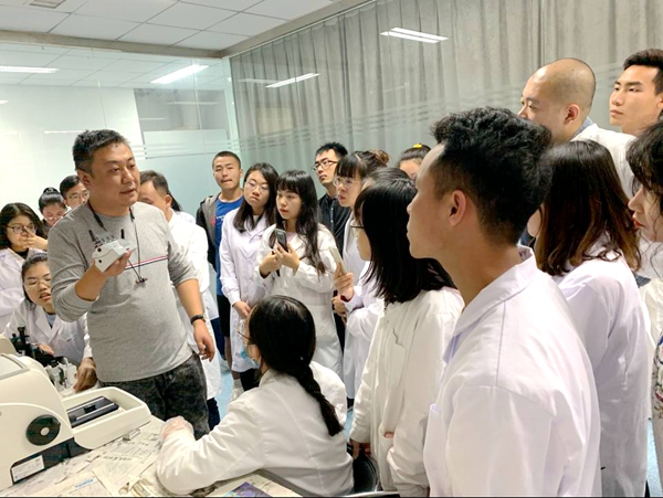 张博工程师首先对仪器的各个部位包括刀架、手柄、包埋框、包埋膜等使用进行了详细的讲解,由于石蜡切片机要用到刀片,工程师特意强调石蜡切片过程中的人身安全。然后,为让员工体验石蜡切片机,在工程师的指导下,现场让员工亲自进行了熔蜡、包埋、切片等一系列步骤。最后,张博工程师重点结合自身理论经验,针对广大师生在石蜡切片机实验过程中遇到的实际问题,进行了现场答疑。