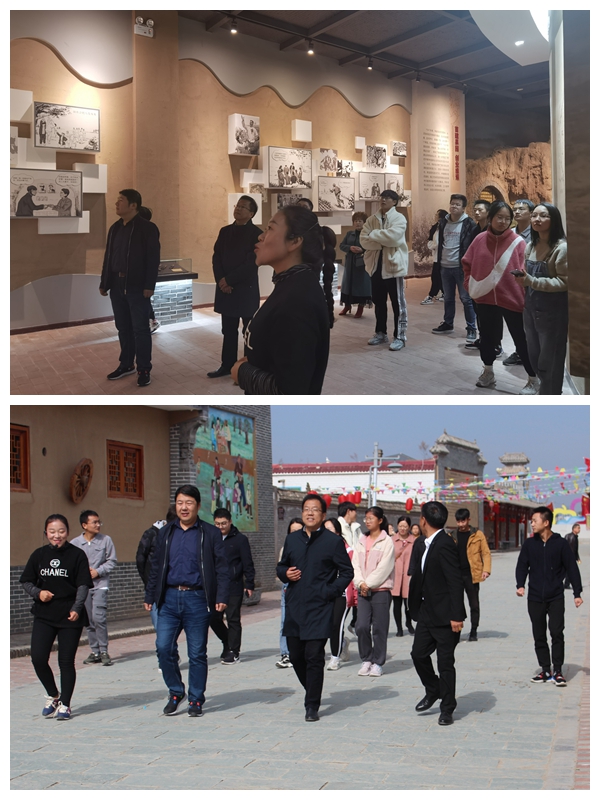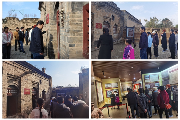 在位于洛川县永乡乡冯家村的洛川会议旧址,师生身临其境感受着红色历史。伟人们雕像前,迎面一组“全民抗战,走向胜利”八个大字,带领同学们走进一幕幕厚重的历史。6个院落、11孔窑洞、5间瓦房分别是洛川会议的会议室、毛主席起居室等旧址,师生一行参观着、感叹着这段为争取抗战胜利而艰苦斗争的历史,追寻红色记忆,传承红色基因。在旧址前,李锐同志带领同行党员和入党积极分子在党旗前重温入党誓词, 激励不忘初心,砥砺前行。