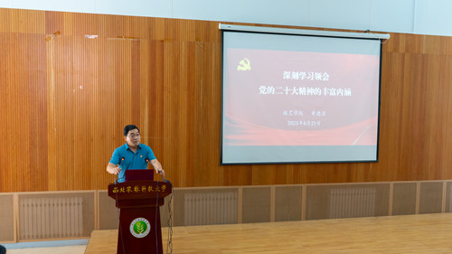会议第二阶段,党委书记黄德宝作题为《深刻学习领会党的二十大精神的丰富内涵》专题党课。黄德宝同志从深刻学习领会党的二十大的主要成果、过去5年的工作和新时代10年的伟大变革、不断谱写马克思主义中国化时代化新篇章的历史责任、以中国式现代化推进中华民族伟大复兴的使命任务、全面建设社会主义现代化国家的目标任务、以伟大自我革命引领伟大社会革命的重要要求、团结奋斗的时代要求七个方面对党的二十大报告内容进行了深刻阐述和解读。当代中国青年生逢其时,施展才干的舞台无比广阔,实现梦想的前景无比光明。他呼吁同学们要认真学习领会和贯彻习近平总书记对青年的教诲和殷切希望,坚定不移听党话、跟党走,不断强化党性修养,自觉把个人发展融入民族复兴的伟业之中,让青春在全面建设社会主义现代化国家的火热实践中绽放绚丽之花。