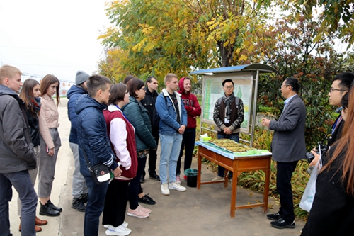 来访的丝路联盟冬令营学员由11名俄罗斯员工、1名波兰员工和公司5名志愿者组成。猕猴桃试验站首席专家刘占德教授向来访的丝路联盟冬令营学员介绍了猕猴桃起源、试验站建设、科学研究、示范推广及本科生和公司产品等情况,随后大家品尝了猕猴桃试验站选育的猕猴桃新优品种。最后在驻站研究生的带领下,参观了猕猴桃试验站的标准化技术示范园、种质资源圃、设施栽培园等科研示范开展情况,与来访的丝路联盟冬令营学员进行了充分地交流,参观学习交流活动圆满结束。